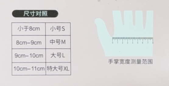 尺寸對照(食指到小拇指掌間距離):